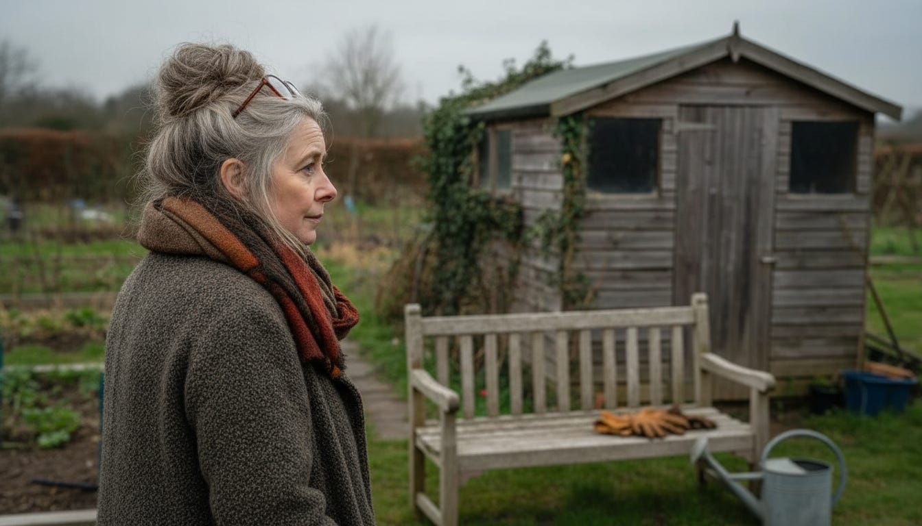 The compost scoop was washed and returned, handle aligned. The gloves—Reginald’s—lay folded on the bench, palms up. And the watering can stood empty, spout angled just so against the shed.