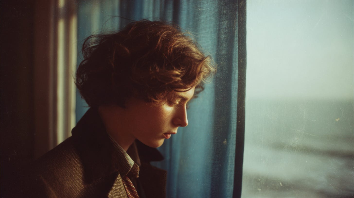 The promenade was nearly empty, the sea pulling quietly at the shore as gulls wheeled overhead in slow, uneven spirals. Most of the amusements were shuttered this time of year, windows fogged over, the carousel tucked beneath a heavy tarpaulin like a forgotten gift. Sam wandered without direction, hands buried in the pockets of their duffle coat, each step rhythmic against the damp planks.