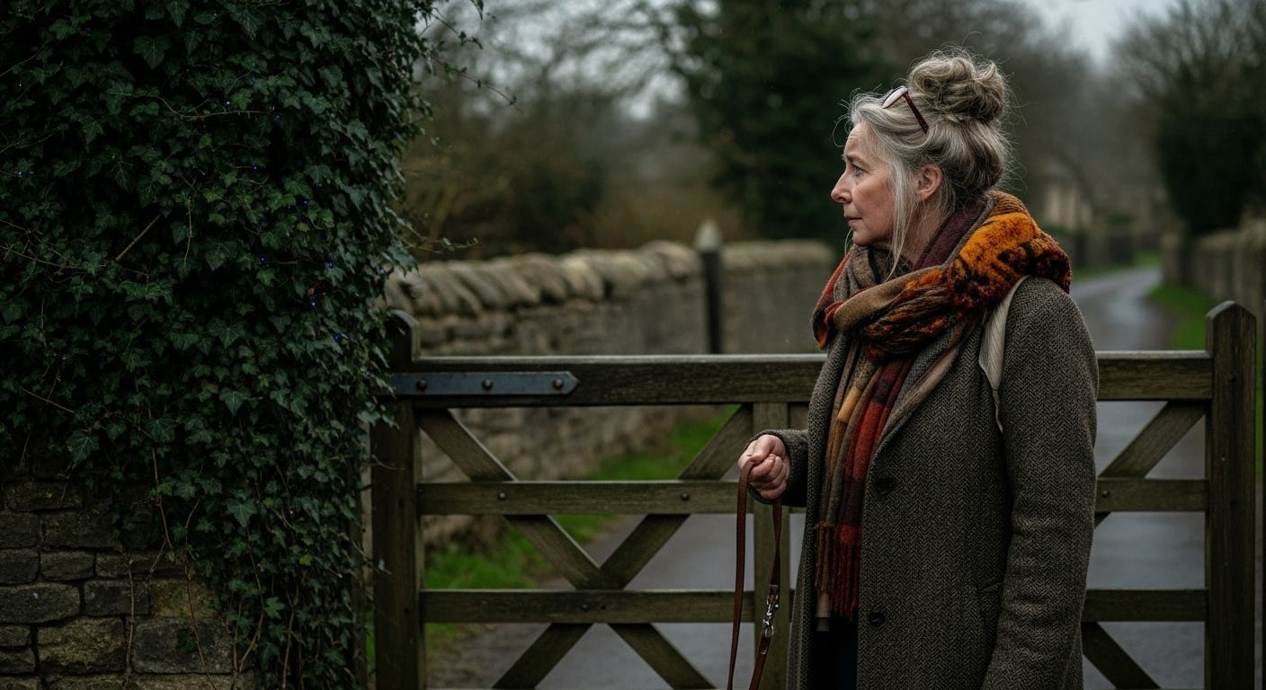Maggie had just turned onto the lane by the crooked gate when Dog pulled hard, nose down, ears forward. He bounded ahead before she could tighten her grip, skidding to a halt at Mavis Holt’s feet.
