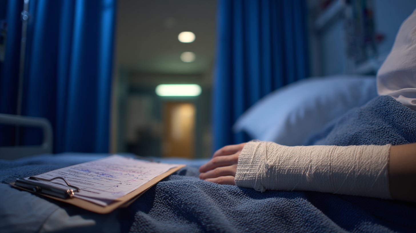 They put her in a cast. A young doctor who talked her through it like she was explaining something to a relative, gentle and slightly too loud. The plaster was warm going on and cold by the time she walked back through the corridor toward the exit, the cast heavier than the wrist, the wrist heavier than it had been when she’d arrived.