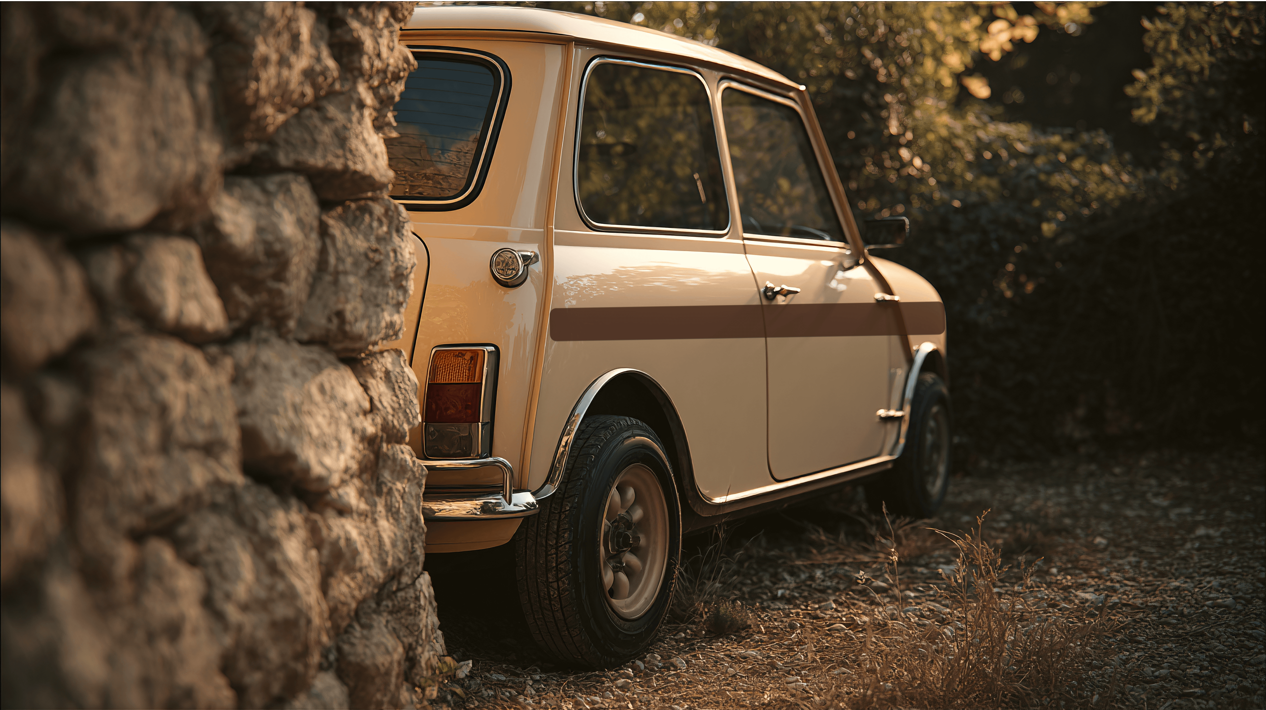 The boot on the old Mini opened downward, like a glove box—little chains on either side. Reversing into the wall meant it couldn’t open at all.