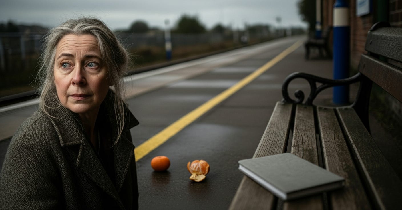 It was the 3:42 to Buxton. Or from Buxton. She never boarded it. Just watched it arrive, count the beats of the engine, and disappear again like a polite regret.